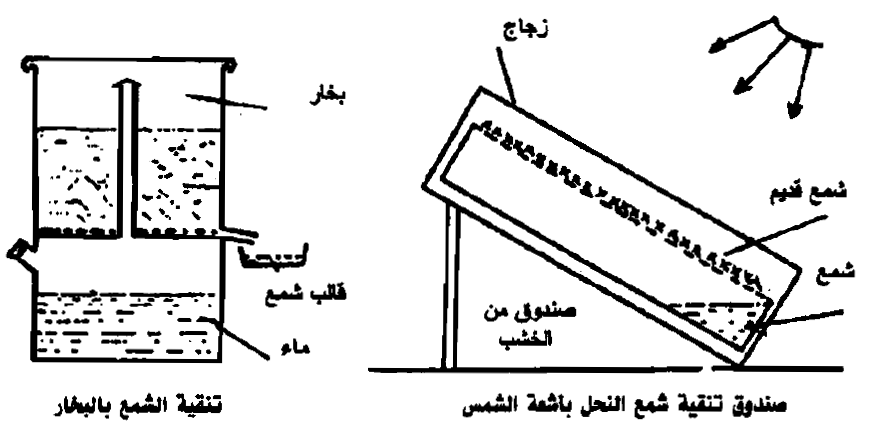 يمكن استعمال صناديق لصهر الشمع عن طريق استخدام أشعة الشمس المباشرة Solar wax extractor ، وهو عبارة عن صندوق خشبي له غطاء من الزجاج المزدوج الجدران، وقاعدته من الزنك . يوضع فيه الشمع المراد تنقيته ، ونتيجة الحرارة المرتفعة عن طريق أشعة الشمس ينصهر الشمع ويسيل منحدرا إلى وعاء خاص معد لذلك، تاركا ما يعلق من شوائب على قاع الصندوق. ويفضل في هذه الحالة صناعة قاعدته على هيئة مموجة لتعمل على حجز هذه الشوائب أثناء انحدار الشمع المنصهر ببطء إلى مكان تجمعيه.