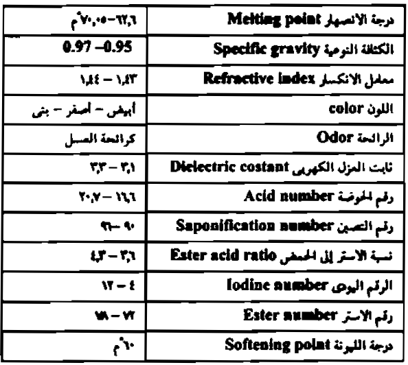 الخواص الطبيعية والتركيب الكيماوي لشمع النحل