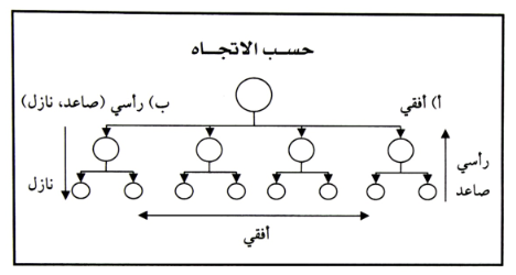 1- افقي: وهو الذي يحصل بين اثنين او اكثر من الافراد على نفس المستوى . وهي الاتصالات الجانبية التي تتم بين الافراد او الجماعات في المستويات المتقابلة (مثل