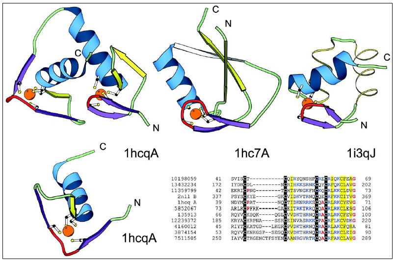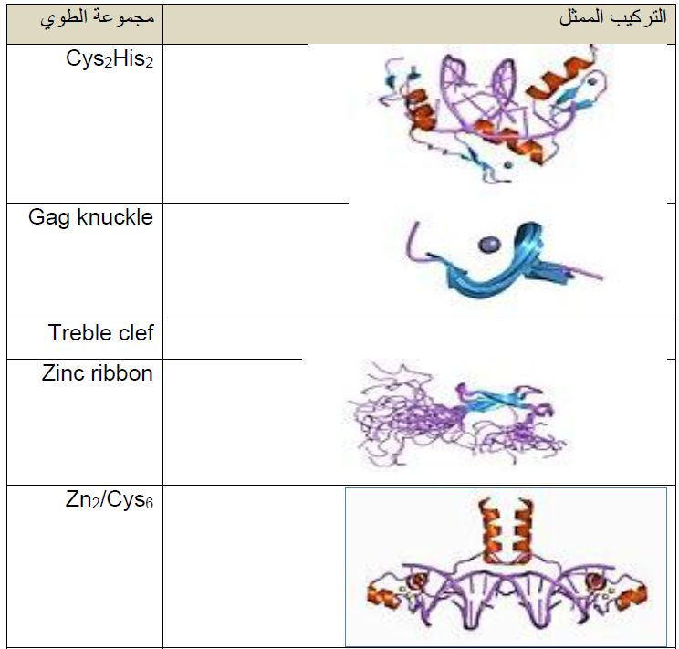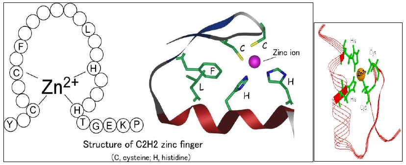والبروتينات صغيرة وتكون بمثابة قطيفات تركيبية Structural Motifs ، الدومين الفعال فيها يرتبط مع ايون زنك واحد او اكثر لتثبت طويات البروتين وتراكيبه التي تتكون من حلزون الفا وصفيحة بتا تربط مع بعضها بالزنك ولا يشترك في الارتباط للهدف ، وهي تراكيب ثابتة ونادرا ما تعاني من تغييرات شكلية عند ارتباطها للاهداف . اول وصف كامل لعامل الانتسخ Transcription Factor III A في الضفادع Xenopus laevis .