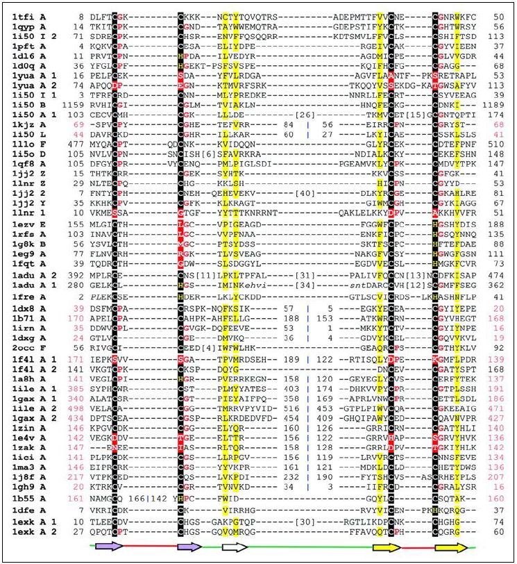 واصابع الزنك تصنف الى عدة عوائل تركيبية ، تتداخل مع RNA , DNA والبروتينات وجزيئات اخرى صغيرة مثل المواد الدهنية ، والتغايرات في تركيبها تحدد خاصية الارتباط للبروتينات ، وقد اصبحت هدفا لعدد من الادوية والبحوث ، والبعض حدد لها التركيب البلوري ، كما توجد منها عوائل تختلف في تواليات الحوامض الامينية والتركيب كما موضح في الاتي :