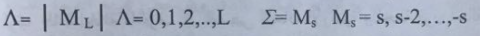 الحالات Λ= 0 تدعى حالات Σ الحالات Λ = 0, 1, 2 تدعى حالات Δ, Π, Φ ان توزيعا الكترونيا ناخذ فيه S وΩ قيما معينة ينتج عنها 2S+1 حالة جزيئية مختلفة.