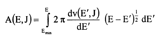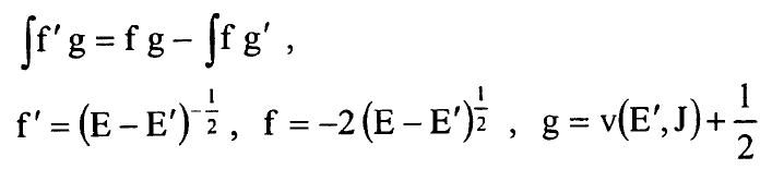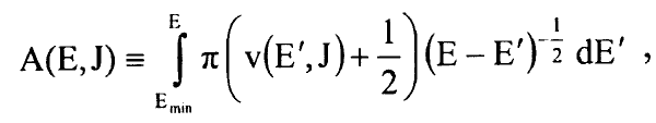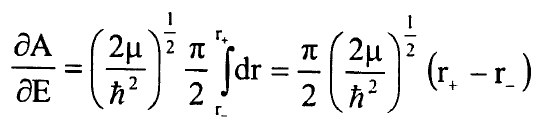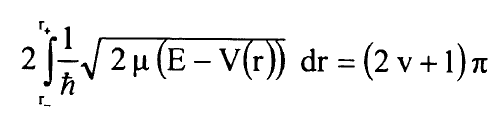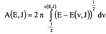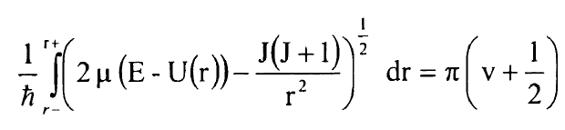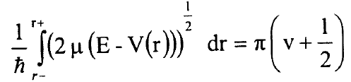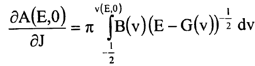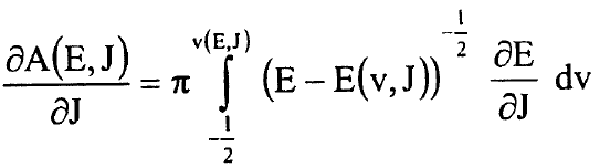 وهكذا يصبح لدينا تعبير بسيط جدا لمشتقات A(E,J) بدلالة B(v) وG(v) وسنعيد الان التعبير عن هذه المشتقات بدلالة نقطتي التحول عند النقطة E ونعود الى تعريف A(E,J) في المعادلة (6) ونعيد كتابة شرط القيمة الذاتية في طريقة WKB في المعادلة (1) بالشكل: