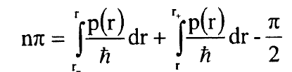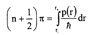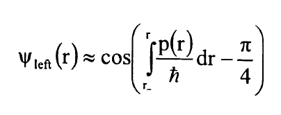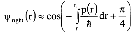 في المعادلتين (2) و(3) ياتي من طريقة لربط دالة WKB الموجية خارج البئر بتقريب دالة الجهد في نقطة التحول الى دالة خطية في r واستخدام الحل المضبوط لمعادلة شرودنجر لجهد خطي وهذا الاجراء ضروري لان تقريب WKB غير صحيح في نقاط التحول ويكون الربط صحيحا اذا: