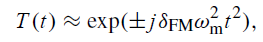 In the FM case, the internal FM introduces a sinusoidally varying phase perturbation such that the round-trip transmission through the modulator is given approximately by