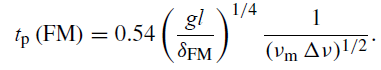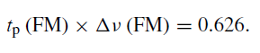 where δFM is the peak phase retardation through the modulator. The ± sign corresponds to the two possible phase positions at which the pulse can pass through the modulator, as mentioned earlier. With these parameters the pulse width of phase mode-locked pulses is given by