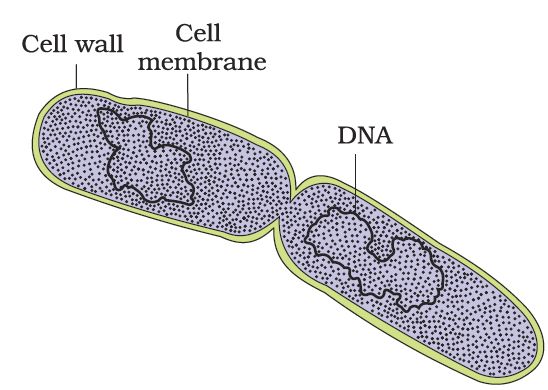 Heterotrophic bacteria are the most abundant in nature. The majority are important decomposers. Many of them have a significant impact on human affairs. They are helpful in making curd from milk, production of antibiotics, fixing nitrogen in legume roots, etc. Some are pathogens causing damage to human beings, crops, farm animals and pets. Cholera, typhoid, tetanus, citrus canker are well known diseases caused by different bacteria. Bacteria reproduce mainly by fission (Figure .3). Sometimes, under unfavourable conditions, they produce spores. They also reproduce by a sort of sexual reproduction by adopting a primitive type of DNA transfer from one bacterium to the other.