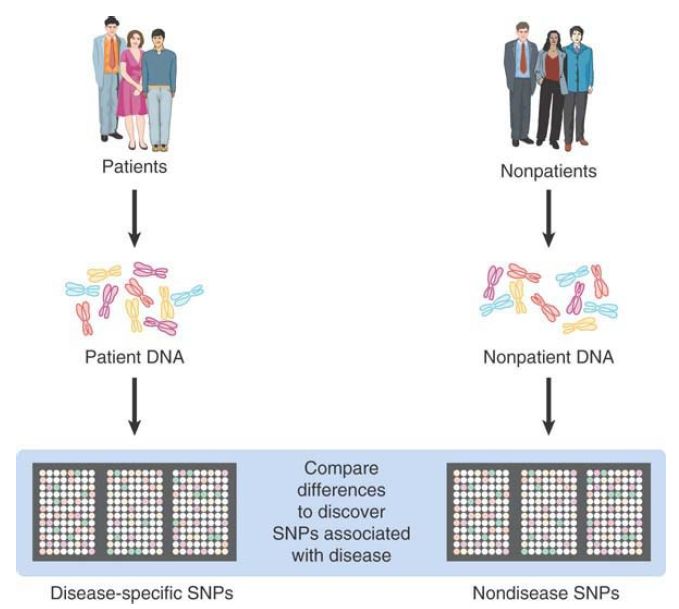 - Through genome-wide association studies, researchers can identify SNPs that are more frequently found in patients with a particular disorder.
