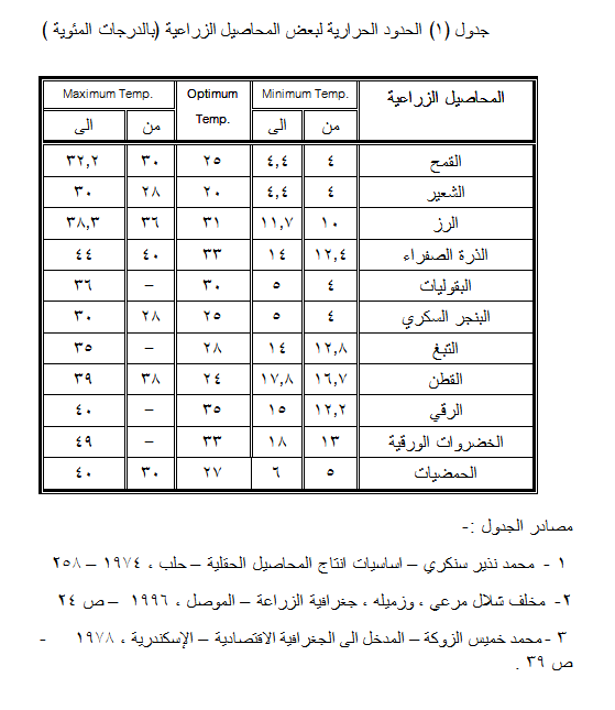 العوامل الطبيعية المؤثرة في الإنتاج الزراعي العوامل المناخية - درجة الحرارة - درجة الحرارة الصغرى