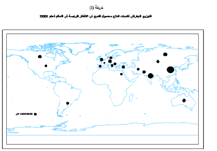 ولتوضيح التوزيع الجغرافي لمحصول القمح سوف نركز على اهم الدول الثلاثة الاولى المنتجة له والتي تتمثل بالآتي:-