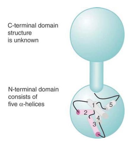 FIGURE 2.Lambda repressor’s N-terminal domain contains five stretches of α-helix; helices 2 and 3 bind DNA.