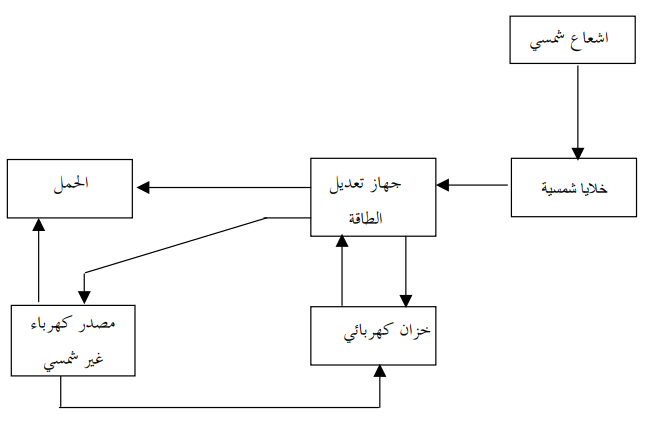 شكل 16- مخطط هيكلي لدائرة كهربائية للتحويل المباشر للاشعة الشمسية الى طاقة كهربائية.