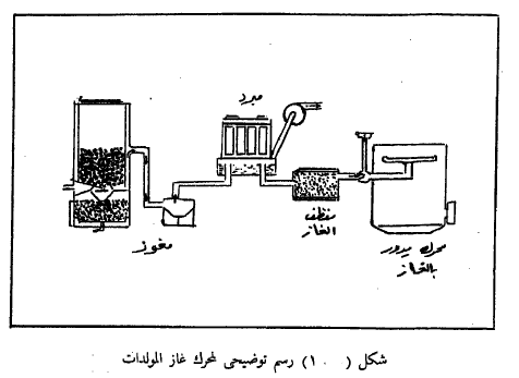وعلى هذا فإن النظام المتكامل لمحرك غاز المولدات يتكون من مغوز، ومبرد ، ومنظف، ومحرك كما في الشكل (1) ودور المغوز هو إنتاج غاز نظيف قابل للاحتراق ( من وقود صلب غير متجانس ) حيث يمكن إستخدامه في محركات آلات الإحتراق الداخلي.
