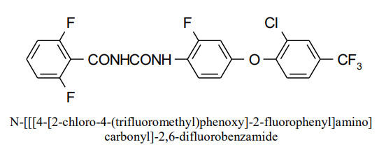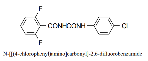 ويباع تحت أسماء تجارية مختلفة منها ال Dimilin و Amilin و Kitinex و Diflubene وغيرها، اسمه وتركيبه الكيميائي: