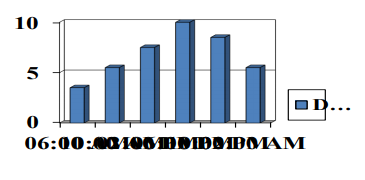شكل يبين تغيرات تركيز الأوكسجين المذاب في الماء في حوض تربية اسماك خلال 24 ساعة