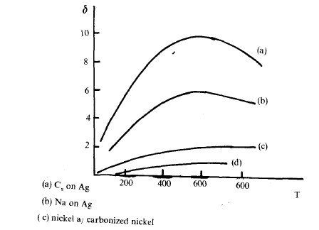 على اية حال تعرف النسبة بين معدل عدد الالكترونات الثانوية المنبعثة الى عدد الالكترونات الاولية ، التي تضرب السطح في وحدة الزمن بمعامل الانبعاث الثانوي ويرمز لها δ. في بعض السطوح تأخذ ة قيما عالية وتصل الى حد 10 – انظر الشكل (2) الذي يوضح هذه النسبة لبعض المعادن ويلاحظ عليه ان أعلى قيمة ل δ تصل عندما تكون طاقة الالكترون الاولية في حدود 400-600 الكترون فولت حيث ان الالكترونات تكون قادرة. عند هذه الطاقة. على اختراق المواد الى عمق 100 قطر ذري.