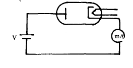 لنفرض الان ان فولتية خارجية متغيرة سلطت بين المصعد والمهبط كما هو مبين في الدائرة - الشكل (2) .عند جعل جهد المصعد موجبا بالنسبة الى المهبط فان بعض الالكترونات من شحنة الفراغ سوف تنجذ ب الى المصعد مسببه سريان تيار في دائرة الصمام يدعى بتيار المصعد ويرمز له ب Ia . عند زيادة جهد المصعد فان تيار المصعد يزداد هو الأخر