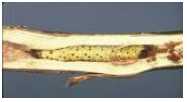 3- تضخم الساق في منطقة الإصابة ويتشقق القلف.