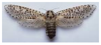 الحشرة الكاملة فراشة ذات لون أبيض ويوجد على الصدر نقط رصاصية قائمة، وعلى البطن أشرطة سوداء ايضا، كما أن لون الأجنحة الأمامية والخلفية أبيض مرقط بنقط لونها رصاصي قاتم.
