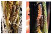 5. في حالة قصب السكر يكون الخطر شديد حيث تتجه البراعم الجانبية للنمو نتيجة للإصابة بالأنفاق الدائرية وتتكون خلف على النباتات مما يؤدي الى تحول السكر الثنائي الي سكر أحادي وبالتالي يحدث خسارة في الناتج النهائي (السكر).