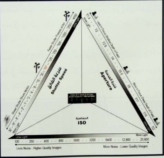 - حساسية الفيلم ( كمية الضوء التي يحتاجها الفيلم لإظهار الصورة كما ينبغي ).