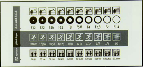 كميـة الضـوء الكافية لإنتـاج صـورة واضحة مماثله للواقع أو كميـة الضـوء الكافية لاحتياج الكاميرا ويعتمد على الإعدادات الخاصة بالكاميرا من ناحية سرعة الغالق وفتحة العدسة والأيزو كما بالشكل (80) و (81) ويكمل كل عنصر الآخـر، ويسـد أحدهـم ضعـف الآخـر فيما لو تغيرت ظروف التصوير، ووظيفـة تلك العناصر هي: