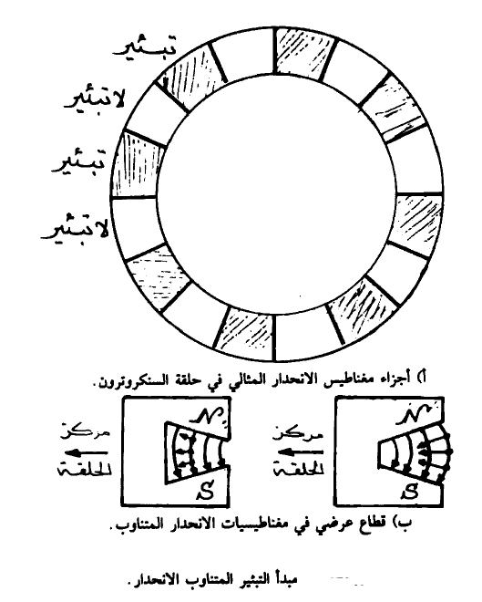 ومن ثم تم استحداث مبدأ جديد لتسارع الجسيمات وهو مبدأ التبنير المتناوب الانحدار Principle of Alternating - Gradiend (AG) Focusingالذي يماثل التبئير المستخدم في المعجلات التوافقية. يعتمد هذا المبدأ على تقسيم حلقة المغناطيس إلى عدة قطاعات يقوم أحدهما بالتبئير Focusing بينما يقوم القطاع المجاور له بعملية اللاتبئير Defocusing وذلك كما في الشكل (1).