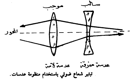 عند سقوط شعاع ضوئي على العدسة المجموعة (الموجبة التبئير) فإنه يتحرك نحو المحور فإذا سقط على العدسة المفرقة (السالبة التبئير أو اللاتبئير)