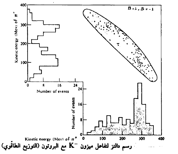 عند دراسة التفاعل الأول (1) ثم الاستعانة بالحاسب الآلي لتحليل طاقة وزخم البايونات +π-, π ونتج شكل يسمى برسم دالتز (Dalitz Plot) الذي نبينه في الشكل (1) وذلك كما يبدو في حجيرة فقاعة. فمن بين