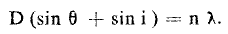 n الرتبة ، i زاوية سقوط الأشعة ، θ وزاية الإنعراج ، D المسافة بين الخطين في الشبكة شكل (3) تحت نفس الزاوية θ نجد خطوط طيفية من المرتبة الأولى λ ومن المرتبة الثانية λ/2 ومن المرتبة الثالثة 3/λ، متطابقة ، ولإبعاد هذا التطابق يستخدم عادة مرشحات ضوئية.