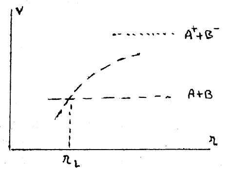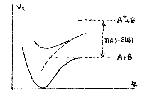 والشكل (1) يبين كيف يتغير ااكمون مابين الحالة الشاردية (+B-+A) حيث نلاحظ بان الكمون المعرف ب V = e2/r يكون بعيد عن المقارب الأفقي حتى عندما تكون r كبيرة ونلاحظ على نفس الشكل الحالة الثانية (B + A) حيث أيضاً المنحني أفقي والكمون الكولوني معدوم. وعند قيم صغيرة ل r يظهر كمون تدافعي للحالة الشاردية وازواج الكمون التدافعي والتجاذبي يترجم بوجود نهاية صغرى شكل (2).