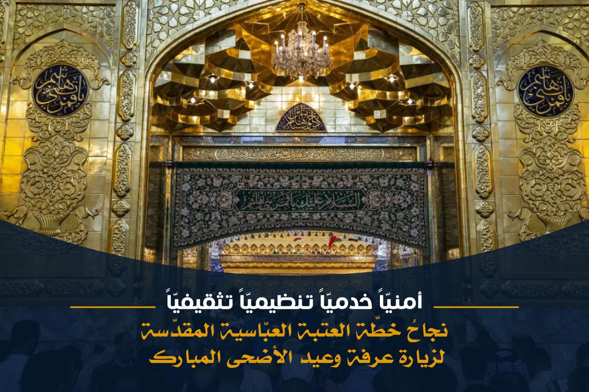 أعلنت العتبة العبّاسية المقدّسة عن نجاح خطّتها الأمنيّة والخَدَميّة والصحّية والتنظيميّة، الخاصّة بزيارة ليلة عرفة ويومها، وايام عيد الأضحى المبارك.