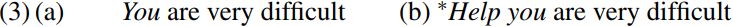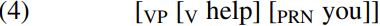By contrast, the phrase help you cannot occupy the kind of position occupied by a pronoun such as you, as we see from (3) below: