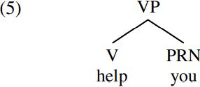 An alternative (equivalent) way of representing the structure of phrases like help you is via a labelled tree diagram such as (5) below (which is a bit like a family tree diagram – albeit for a small family):