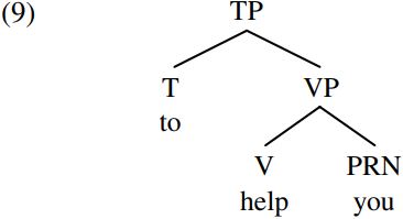 The phrase in (6B) is formed by merging the infinitive particle to with the verb phrase help you. What’s the head of the resulting phrase to help you? A reasonable guess would be that the head is the infinitival tense particle/T to, so that the resulting expression to help you is an infinitival TP (= infinitival tense projection = infinitival tense phrase). This being so, we’d expect to find that TPs containing infinitival to have a different distribution (and so occur in a different range of positions) from VPs/verb phrases – and this is indeed the case, as we see from the contrast below: