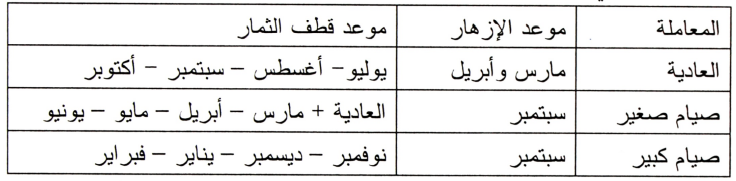 وباستخدام التصويم أمكن إمداد الأسواق بالليمون طوال العام كما هو مبين بالجدول التالي: