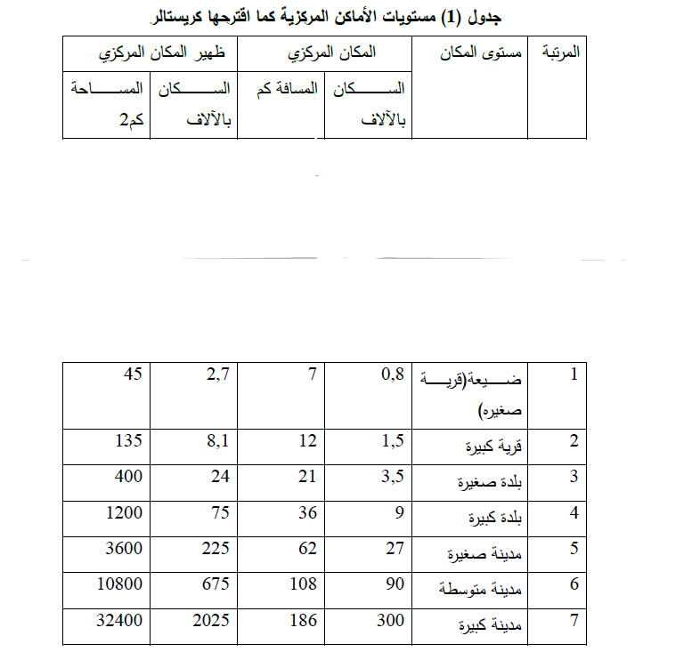 2- كلما ارتقى المكان المركزي رتبة زاد عدد السكان للإقليم التابع له بمقدار3مرات.