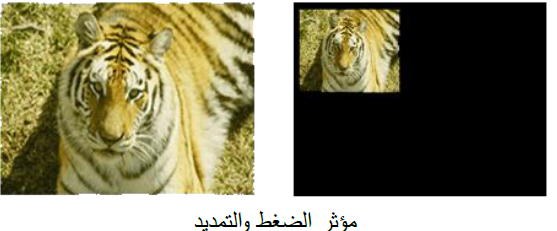 أما التمديد expansion فهو عكس الضغط ، فمن الممكن أن نبدأ من حجم صورة صفر zero-size in age ، ويقوم بتوسيعها وتمديدها حتى تصبح كادر كامل full frame . وهو يظهر وكأننا ويشكل إلكتروني قمنا بعمل zoom in على الصورة . وهذا المؤثر يسمح للمونتير بتوسيع الصورة خارج نطاق الكادر.