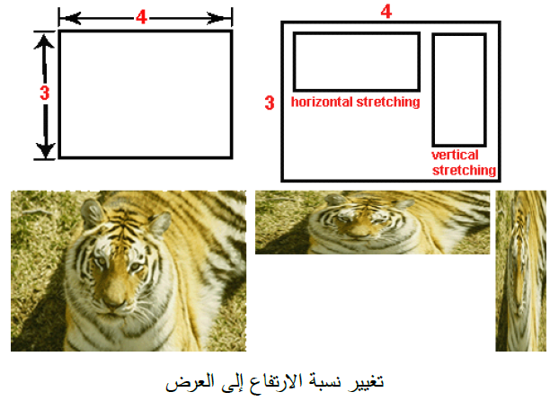 باستعمال جهاز المؤثرات الرقمية، يستطيع المونتير تغيير نسبة الارتفاع إلى العرض المتعارف عليها 4:3 ( ثلاث وحدات ارتفاع وأربع وحدات عرض ) ، إما إلى مستطيل أكثر عرضة أو مستطيل أكثر ارتفاعا.
