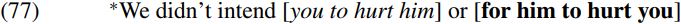 And indeed this is an assumption made by Chomsky in recent work. However, there is one particular type of clause which is exceptional in that it lacks the CP layer found in canonical clauses – namely infinitival complement clauses like those bracketed in (76) below which have (italicized) accusative subjects: