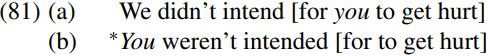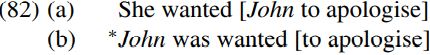 This is because it is a property of the subject of an infinitival CP complement clause like that bracketed in (81a) below that its subject cannot be passivized – as we see from the ungrammaticality of (81b):