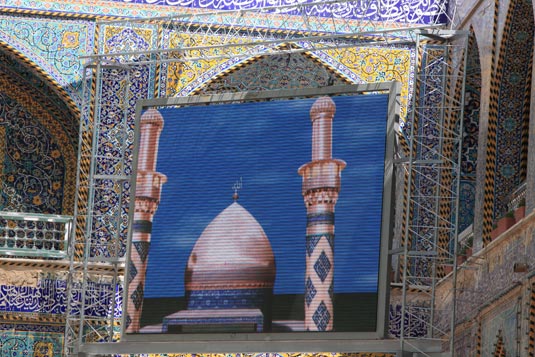 مضيفاً وهذه الشاشات أستوردت خصيصاً من الصين وذات مواصفات خاصة حددها الفنيون المختصون في العتبة المقدسة، وهي ذات دقة عالية العرض، وقادرة على تحمل درجات الحرارة العالية والظروف الجوية الصعبة من الأتربة وغيرها والتي تتصف بها أجواء العراق في السنوات القليلة الماضية.