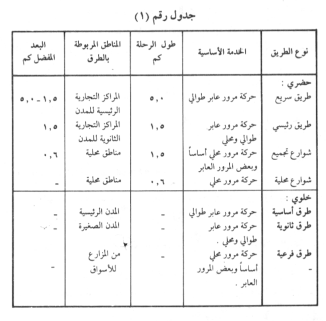 والجدول رقم (1) يوضح خصائص الطرق سواء الحضرية أو الخلوية :