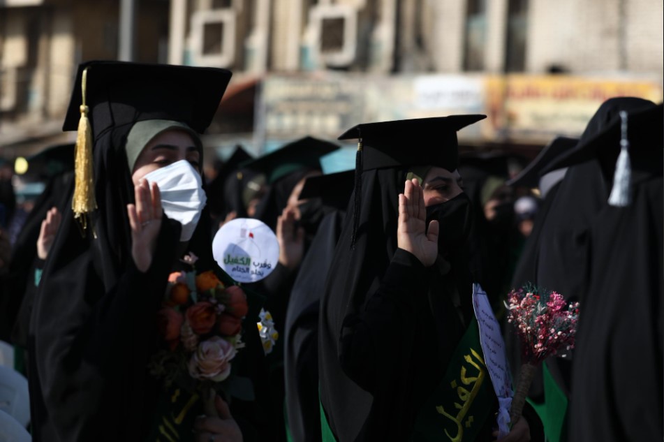 حفل بنات الكفيل.. 1600 طالبة جامعية يرددن قسم خدمة الوطن عند مرقد أبي الفضل العباس (عليه السلام)