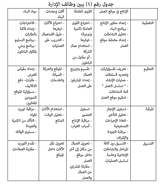 لا شك أن الاتصالات الناجحة بين جميع المستويات الإدارية والفنية لأي مشروع أو مؤسسة تعمل على سرعة تنفيذ التعليمات وعلى تجنب سوء الفهـم أو الغموض لأغراض المشروع، إن مدى أسلوب الاتصالات يرتبط بنطاق الإشراف وحدود التفويض والمسؤولية في داخل الشركة أو خارج نطاق الشركة. (أنظر جـدول "1" يبين وظائف الإدارة).