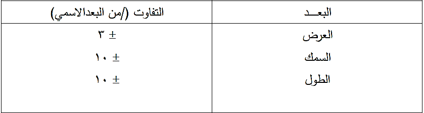 يكون التفاوت بالأبعاد كما في الجدول رقم ( 8-8 ) :