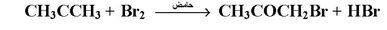 من ناحية أخرى فإنه يمكن تفاعل البروم مع الأسيتون باستخدام حامض كحافز كما في المعادلة التالية :