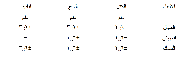 التفاوت المسموح للابعاد :