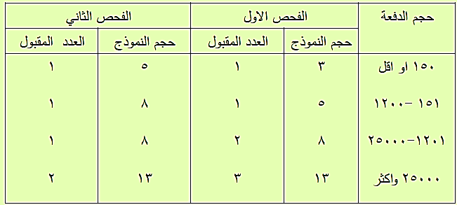 اذا كان عدد الوحدات غير المطابقة أكبر من عدد القبول فيؤخذ نموذج ثاني ويجري فحصه .
