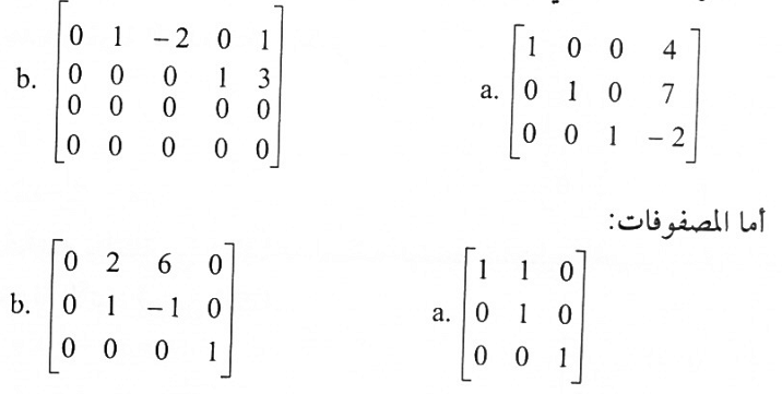 المصفوفات الآتي هي بالصيغة المدرجة الصفية المختزلة
